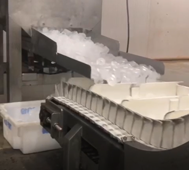 Nossa matéria prima é coletada diariamente dos poços artesianos próprios. Ao chegar na fabrica a água é devidamente tratada e monitorada por nossa equipe especializada. O gelo é produzido e embalado por maquinas automatizadas e sem qualquer contato manual e em seguida é armazenado em câmaras frias.